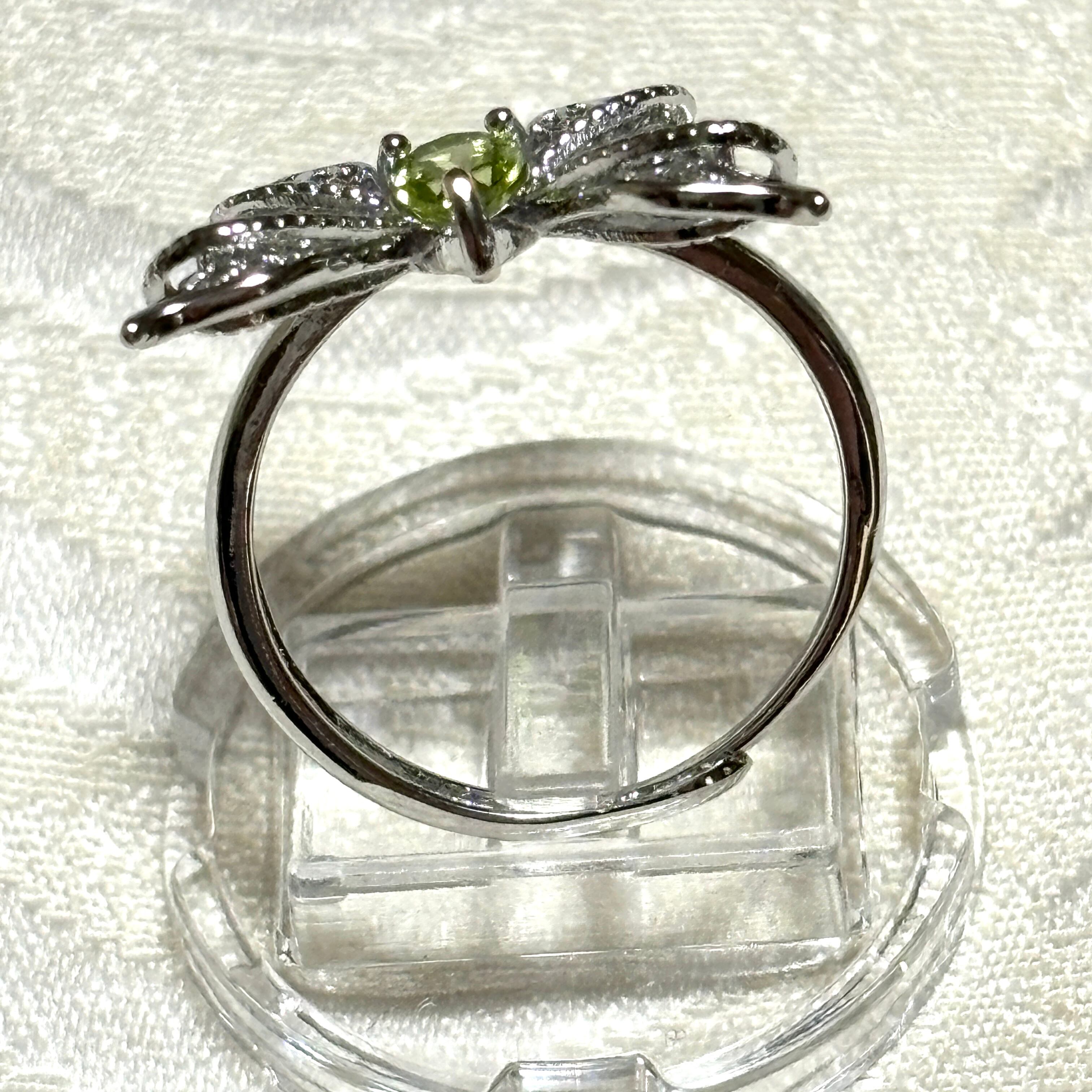 【検索ワード】天然石リング フリーサイズリング ペリドット 蝶モチーフ クリスタル 癒し 自信 天然石