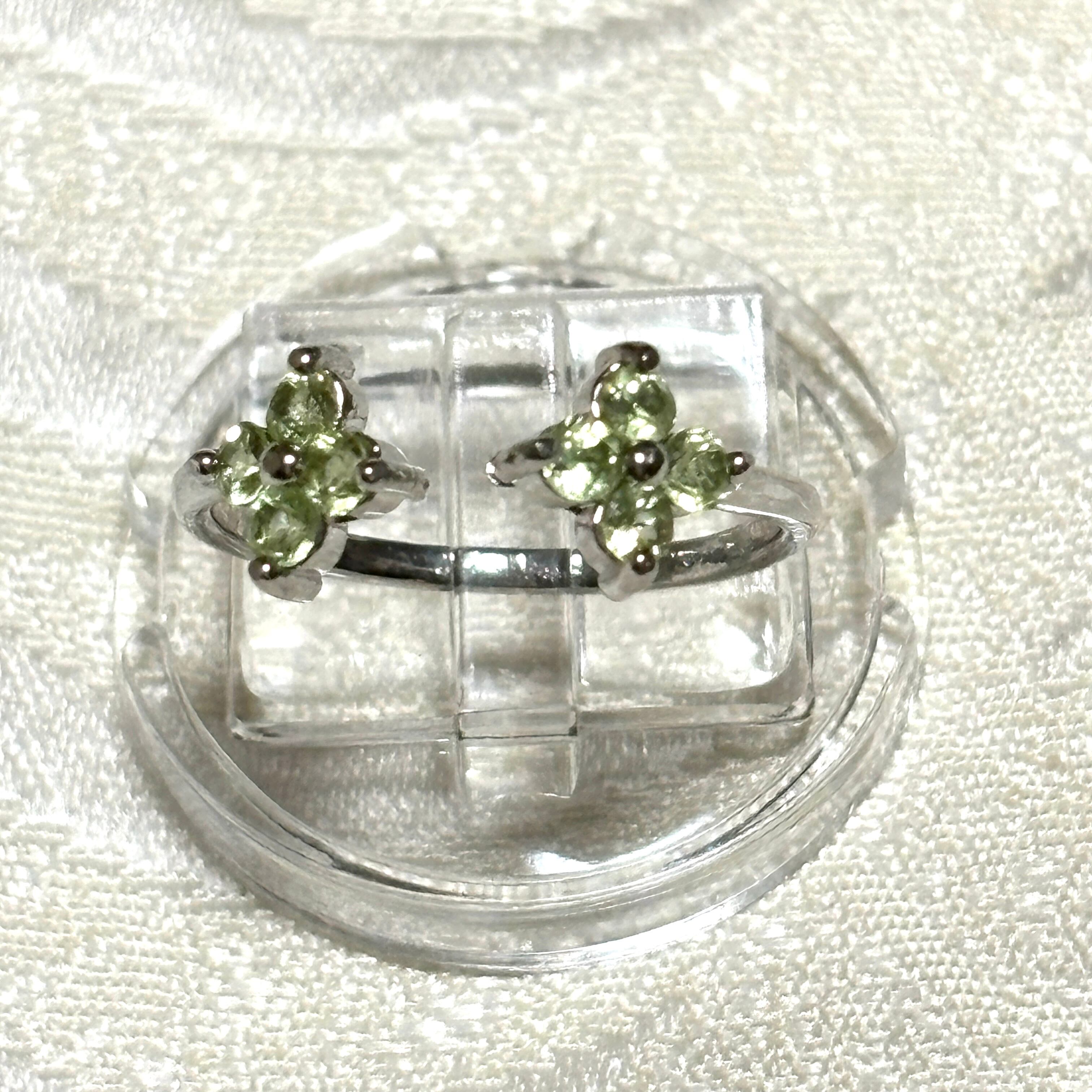 【検索ワード】天然石リング フリーサイズリング ペリドット 四葉モチーフ 真鍮製クリスタル 癒し ポジティブエネルギー